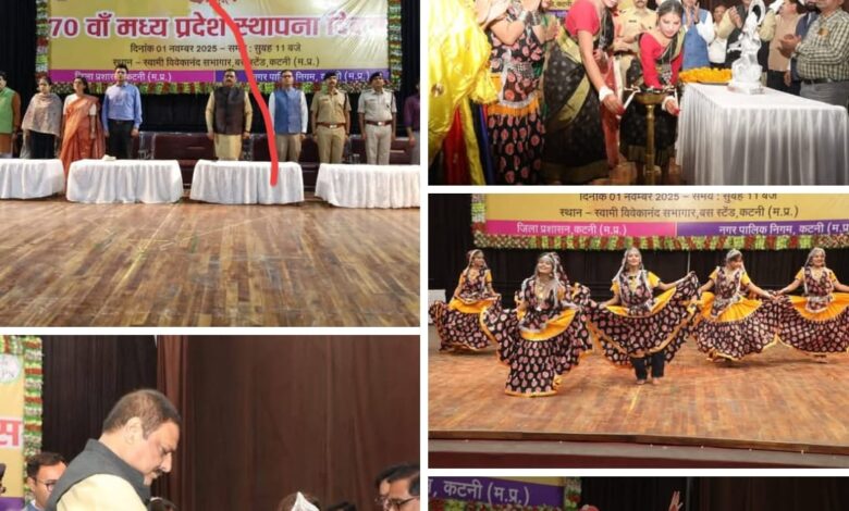 कटनी मध्यप्रदेश” का 70वाँ स्थापना दिवस बस स्टैंड ऑडिटोरियम में हर्षोल्लास के साथ मनाया गया रंगारंग सांस्कृतिक कार्यक्रम की प्रस्तुतियों ने बांधा समां विधायक श्री जायसवाल के मुख्यातिथ्य में आयोजित हुआ कार्यक्रम