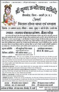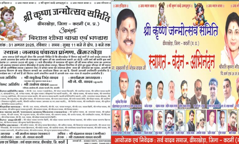 ढीमरखेड़ा में 31अगस्त को निकलेगी श्रीकृष्ण जन्मोत्सव की भव्य शोभायात्रा सर्व यादव समाज के तत्वावधान में विशाल भंडारा, हजारों श्रद्धालु होंगे शामिल,