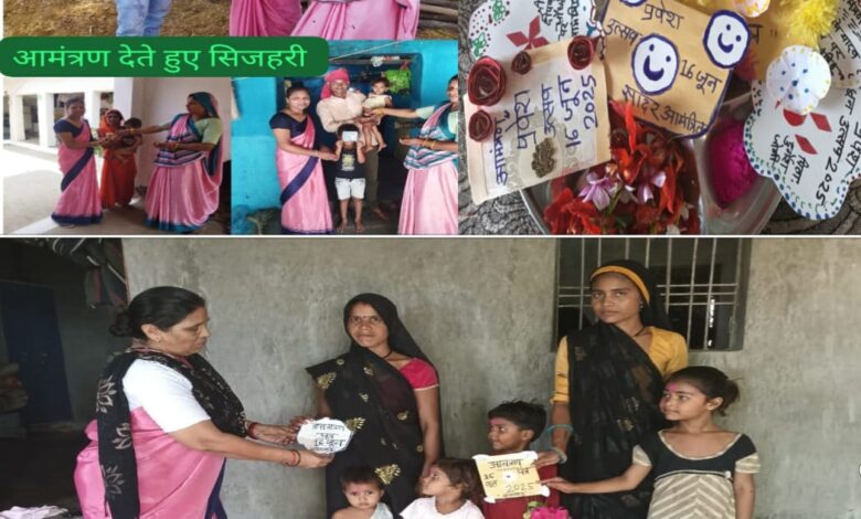 परियोजना अधिकारी श्री सतीश कुमार पटेल ने बताया कि आंगनबाड़ी केंद्र आने के लिए घर -घर भेजे जा रहे आमंत्रण पत्र पर बच्चों के पसंदीदा फूल , पक्षी, जानवर और फलों के चित्र चिपकाकर आमंत्रण पत्र को आकर्षक और मनोहारी स्वरूप में डिजाइन किया गया है।