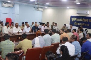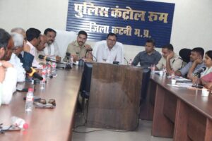 बैठक में नवरात्रि, दशहरा, दीपावली, गोवर्धन पूजा, गुरूनानक जयंती (प्रकाश पर्व) और क्रिसमस त्यौहार के आगामी महीनों में आयोजन के मद्देनजर पुलिस कंट्रोल में आयोजित बैठक में पुलिस अधीक्षक श्री अभिनय विश्वकर्मा, अपर कलेक्टर श्री नीलांबर मिश्र, अतिरिक्त पुलिस अधीक्षक डॉ. संतोष डेहेरिया, संयुक्त कलेक्टर जितेन्द्र पटेल, एसडीएम बहोरीबंद राकेश कुमार चौरसिया, एसडीएम विजयराघवगढ़ विवेक गुप्ता और एसडीएम ढीमरखेड़ा निधि सिंह गोहल सहित पुलिस, प्रशासन, बिजली व नगरनिगम के अधिकारी मौजूद रहे।