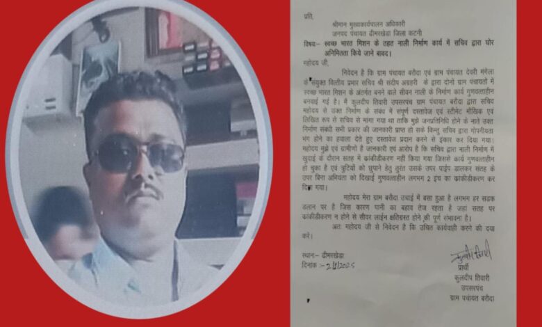 उमरियापान- स्वच्छ भारत मिशन के तहत ग्रामीण क्षेत्रों में स्वच्छता को बढ़ावा देने के उद्देश्य से विभिन्न प्रकार के निर्माण कार्यों का आयोजन किया जाता है। लेकिन कई बार इन योजनाओं के क्रियान्वयन में भ्रष्टाचार और अनियमितताओं की घटनाएं सामने आती हैं। ऐसी ही एक घटना ग्राम पंचायत बरौदा में देखने को मिली है, जहां स्वच्छ भारत मिशन के तहत बनने वाली नालियों के निर्माण में गंभीर अनियमितताओं के आरोप लगे हैं। इन आरोपों के केंद्र में ग्राम पंचायत बरौदा के सचिव संदीप अग्रहरी और जनपद सीईओ यजुर्वेद कोरी हैं, जिनकी भूमिका संदेह के घेरे में है।ग्राम पंचायत बरौदा और ग्राम पंचायत देवरी मंगेला के संयुक्त वित्तीय प्रभार सचिव संदीप अग्रहरी पर आरोप है कि उन्होंने स्वच्छ भारत मिशन के तहत बनने वाले नाली निर्माण कार्य में गंभीर अनियमितताएं की हैं। यह कार्य गुणवत्ताहीन बताया जा रहा है, जिससे न केवल सरकारी धन का दुरुपयोग हुआ है, बल्कि ग्रामीणों की समस्याएं भी बढ़ी हैं। ग्राम पंचायत बरौदा के उपसरपंच कुलदीप तिवारी ने इस मामले में उच्च अधिकारियों से शिकायत दर्ज कराई है। उन्होंने संबंधित निर्माण कार्य से जुड़े संपूर्ण दस्तावेज और स्टीमेट की मांग की थी ताकि निर्माण में हो रही गड़बड़ियों की पुष्टि की जा सके। हालांकि, सचिव ने गोपनीयता का हवाला देते हुए दस्तावेज उपलब्ध कराने से इनकार कर दिया। यह सचिव की भूमिका पर गंभीर सवाल खड़े करता है।