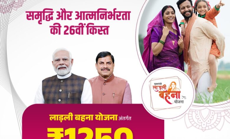 मध्यप्रदेश की 1.27 करोड़ लाड़ली बहनों के लिए बड़ी खुशखबरी सामने आई है। जहां मुख्यमंत्री डॉ मोहन यादव ने उज्जैन से सिंगल क्लिक के जरिए लाड़ली बहना योजना की हितग्राहियों के खाते में 1250-1250 रुपए ट्रांसफर किए हैं। रक्षाबंधन के अवसर पर 27वीं किस्त में बहनों के खाते में पैसे बढ़कर आएंगे।