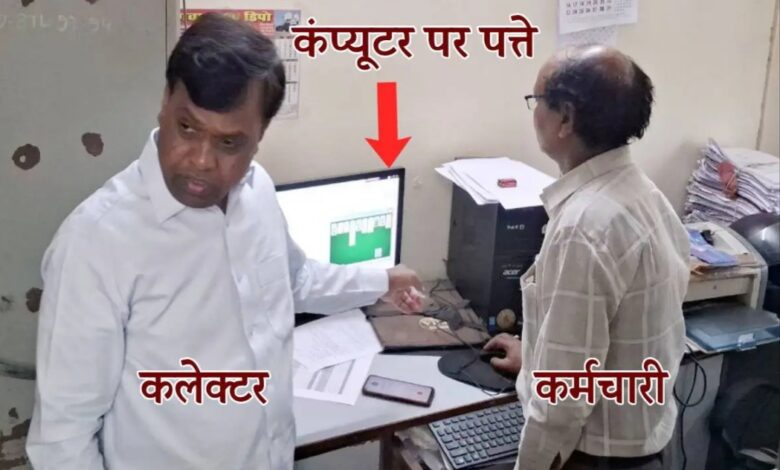 सरकारी दफ्तरों में कर्मचारियों की कार्यप्रणाली को लेकर हमेशा सवाल उठते रहे हैं। ये आरोप लगते रहते हैं कि सरकारी दफ्तरों में कर्मचारी काम को लटकाते रहते हैं और कई बार तो काम छोड़कर टाइम पास करते हैं। अब ऐसा ही एक मामला मध्यप्रदेश के बैतूल से सामने आया है। यहां एक कर्मचारी काम के वक्त में आराम से कंप्यूटर पर ताश खेल रहा था लेकिन जैसे ही वो पलटा तो पीछे कलेक्टर को खड़ा पाया।