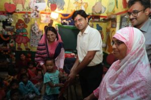 कलेक्टर श्री यादव का पथवारी के आंगनबाड़ी केन्द्र क्रमांक 2 में पहुंचने पर 4 वर्षीय माही सिंह और मानवी ने टीका लगाकर कलेक्टर का अभिनंदन किया। इसके बाद कलेक्टर श्री यादव ने आंगनबाड़ी केन्द्र में प्रतीक स्वरूप विष्णु सिंह और लक्ष्मी गोस्वामी सहित सभी 30 बच्चों को टी-शर्ट व लोवर प्रदान किया। इस आंगनबाड़ी केन्द्र को मानव जीवन विकास समिति ने गोद लिया हुआ है। समिति के ही सौजन्य से गुरुवार को बच्चों को टी-शर्ट, लोवर भेंट किया गया।