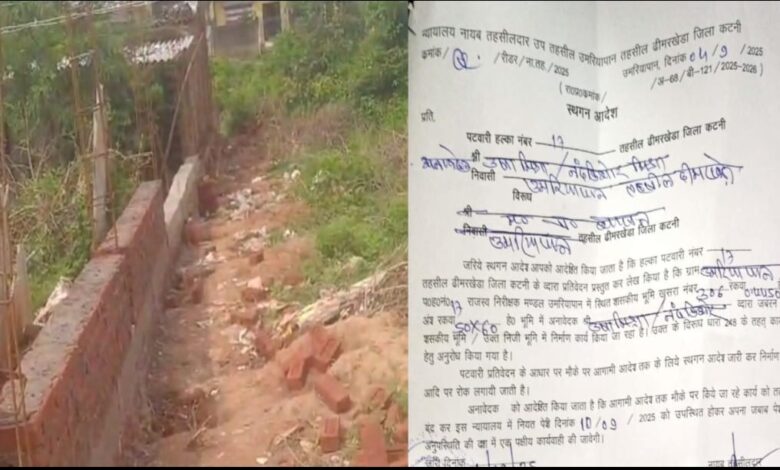 मामला पटवारी हल्का नंबर 17 की शासकीय भूमि से जुड़ा है। राजस्व अभिलेखों के अनुसार खसरा नंबर 306 रकबा 0.4450 हेक्टेयर भूमि में से अंश भाग पर उमरियापान निवासी उषा नंदकिशोर मिश्रा द्वारा कब्जा कर निर्माण कार्य किया जा रहा है। इस पर जब पटवारी द्वारा प्रतिवेदन प्रस्तुत किया गया, तो नायाब तहसीलदार ने तत्काल प्रभाव से निर्माण पर रोक लगाने हेतु स्थगन आदेश जारी किया।