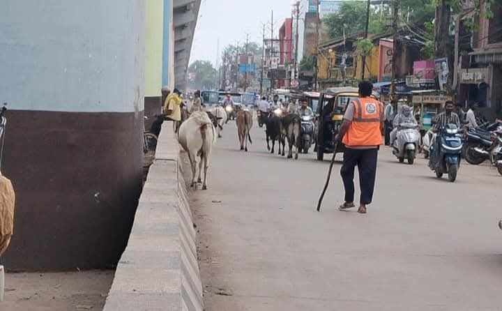 कलेक्टर श्री यादव के निर्देश पर नगर निगम आयुक्त नीलेश दुबे द्वारा आवारा मवेशियों के नियंत्रण और उन्हे सुरक्षित पकड़कर कांजी हाउस में पहुंचाने के लिए गठित हांका गैंग की टीम द्वारा सोमवार की देर शाम तक 57 आवारा, घुमन्तू पशुओं को झिंझरी स्थित कांजी हाउस पहुंचाया गया।