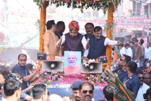 मुख्यमंत्री डॉ. मोहन यादव रथ में सवार होकर लोगों का अभिवादन करते हुए आगे बढ़ते रहे। उनके साथ रथ में खजुराहो सांसद विष्णु दत्त शर्मा, विजयराघवगढ़ विधायक संजय सत्येंद्र पाठक और भाजपा जिला अध्यक्ष दीपक टंडन सोनी भी मौजूद रहे। मुख्यमंत्री ने भी हाथ जोड़कर लोगों के अभिवादन का जवाब दिया।