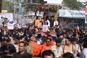 मुख्यमंत्री डॉ. मोहन यादव रथ में सवार होकर लोगों का अभिवादन करते हुए आगे बढ़ते रहे। उनके साथ रथ में खजुराहो सांसद विष्णु दत्त शर्मा, विजयराघवगढ़ विधायक संजय सत्येंद्र पाठक और भाजपा जिला अध्यक्ष दीपक टंडन सोनी भी मौजूद रहे। मुख्यमंत्री ने भी हाथ जोड़कर लोगों के अभिवादन का जवाब दिया।