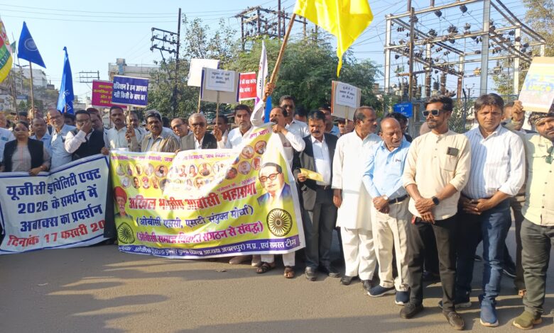 कलयुग की कलम जबलपुर – मंगलवार, 17 फरवरी को अखिल भारतीय ओबीसी महासभा, ओबीसी-एससी-एसटी संयुक्त मोर्चा एवं विभिन्न सामाजिक संगठनों के तत्वावधान में घंटाघर, जबलपुर में विशाल प्रदर्शन आयोजित किया गया। प्रदर्शनकारियों ने विश्वविद्यालय अनुदान आयोग (UGC) के समर्थन में राष्ट्रपति महोदया के नाम संबोधित ज्ञापन कलेक्टर को सौंपा।