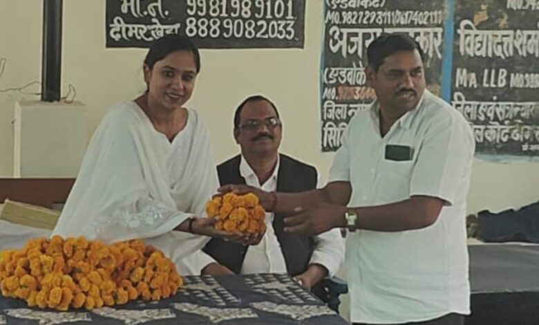 व्यवहार न्यायालय ढीमरखेड़ा में न्यायाधीश पूर्वी तिवारी ने किया पदभार ग्रहण, वकीलों ने फूल माला गुलदस्ता देकर किया आत्मीय स्वागत,