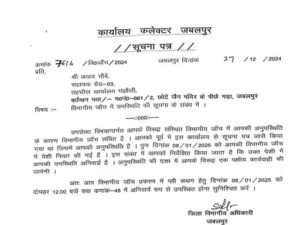 कलयुग की कलम जबलपुर-जबलपुर के संयुक्त कलेक्टर पुष्पेंद्र आहके ने तहसील मंझौली में पदस्थ सहायक ग्रेड 3 अजय चौबे और तहसील कार्यालय आधारताल के निलंबित पटवारी जागेंद्र पीपरे को पत्र जारी कर निर्देशित किया है कि दोनों की लगातार अनुपस्थिति के कारण उनकी विभागीय जांच लंबित हो रही है। इस संबंध में 8 जनवरी को विभागीय अधिकारी के सामने पेश होकर अपना पक्ष रखने की मोहलत दी है। अनुपस्थिति पर एक पक्षीय कार्यवाही की जाएगी। दरअसल, जमीन फजीर्वाड़े के मामले में पटवारी जागेंद्र पीपरे और लिपिक अजय चौबे फिलहाल फरार हैं और जिस तरह से अधारताल तहसील में इतने बड़े पैमाने पर जमीन का फर्जीवाड़ा कर किसी दूसरे व्यक्ति की जमीन किसी अन्य के नाम पर कर करोड़ों रूपये कमाये गये उसका मुख्य सरगना पटवारी संघ का पूर्व अध्यक्ष जागेंद्र पीपरे है इसके द्वारा ही भ्रष्टाचार की बुनियाद रखी गई थी। जिस क्षेत्र में यह फर्जीवाड़ा हुआ है उसका हल्का पटवारी भी जागेंद्र पीपरे रहा है।