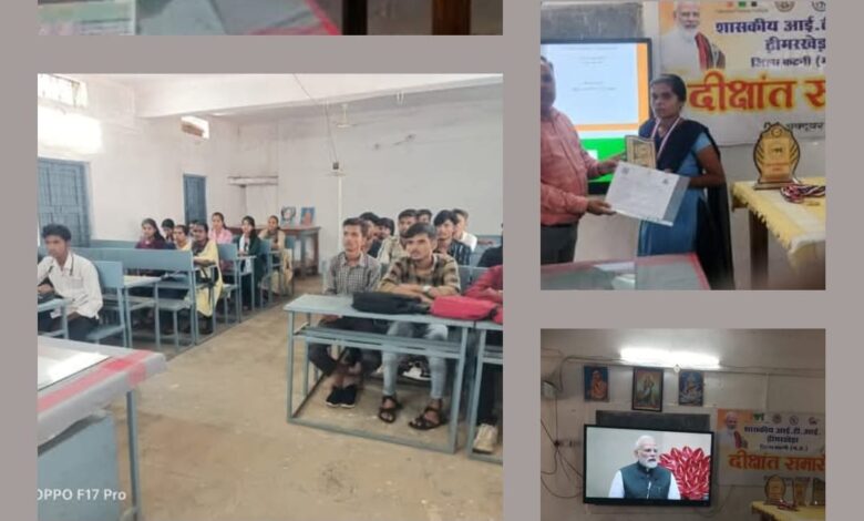 शासकीय आईटीआई ढीमरखेड़ा में कौशल दीक्षांत समारोह आयोजित समारोह का लाइव टेलीकास्ट प्रशिक्षणार्थियों को दिखाया गया।