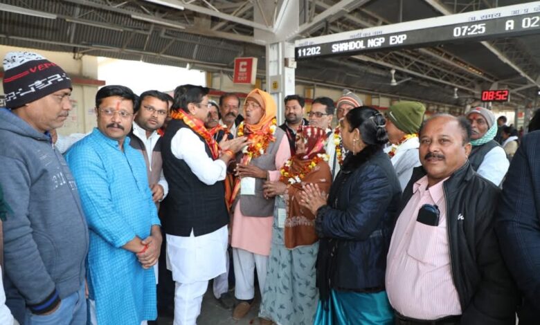 मुख्यमंत्री तीर्थ दर्शन यात्रा योजना भक्तिमय वातावरण में बुजुर्ग तीर्थयात्रियों का जत्था हुआ शिर्डी के लिए रवाना स्टेशन पर तीर्थ यात्रियों का जनप्रतिनिधि एवं प्रशासनिक अधिकारियों द्वारा हुआ आत्मीय स्वागत