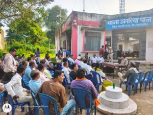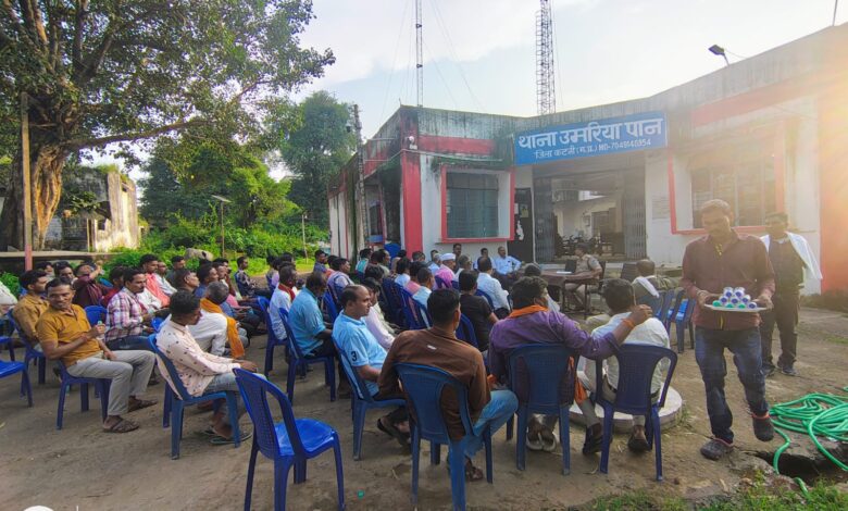 कलयुग की कलम उमरिया पान-आगामी दुर्गा उत्सव एवं दशहरा पर्व को शांति, सौहार्द्र और धार्मिक उत्साह के साथ मनाने के उद्देश्य से उमरिया पान थाना प्रांगण में थाना प्रभारी श्री दिनेश तिवारी की अध्यक्षता में शांति समिति की बैठक आयोजित की गई। इस बैठक में थाना क्षेत्र के विभिन्न गांवों से आए हुए जनप्रतिनिधि, दुर्गा उत्सव समिति के सदस्य, समाजसेवी, पत्रकारगण एवं ग्रामीणजन बड़ी संख्या में शामिल हुए।बैठक का मुख्य उद्देश्य पर्व के दौरान सुरक्षा व्यवस्था, धार्मिक आयोजनों की गरिमा, सामाजिक समरसता तथा प्रशासन और जनभागीदारी के बीच बेहतर तालमेल सुनिश्चित करना रहा।