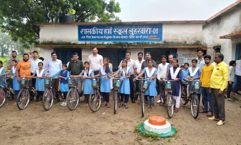 शासकीय हाई स्कूल लोहरवारा में साइकिल वितरण कार्यक्रम साइकिल पाकर खिले छात्राओं के चेहरे विधायक श्री धीरेंद्र बहादुर सिंह ने पार्टी पदाधिकारियों के साथ मिलकर छात्राओं को साइकिल वितरित की।