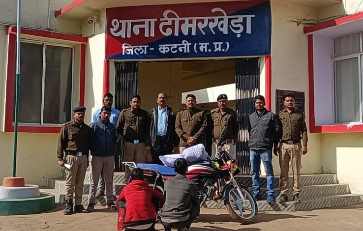 कलयुग की कलम ढीमरखेड़ा -कटनी जिले में मादक पदार्थों की तस्करी के विरुद्ध चलाए जा रहे अभियान के तहत ढीमरखेड़ा पुलिस को बड़ी सफलता मिली है। पुलिस अधीक्षक कटनी अभिनय विश्वकर्मा के निर्देश पर जिले में जुआ, सट्टा, अवैध शराब एवं नशे के कारोबार पर लगातार प्रभावी कार्रवाई की जा रही है। इसी क्रम में अतिरिक्त पुलिस अधीक्षक डॉ. संतोष डेहरिया एवं एसडीओपी आकांक्षा चतुर्वेदी के मार्गदर्शन में थाना प्रभारी ढीमरखेड़ा निरीक्षक अभिषेक चौबे के नेतृत्व में पुलिस टीम ने दो अलग-अलग स्थानों पर दबिश देकर दो गांजा तस्करों को गिरफ्तार किया।