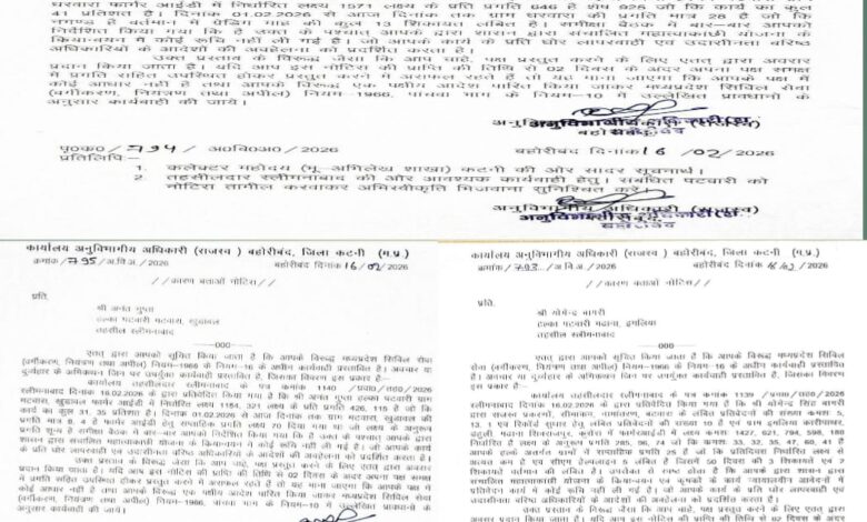 बहोरीबंद में सुस्ती पर सख्ती राजस्व कार्यों में लापरवाही: 3 पटवारियों को कारण बताओ नोटिस, दो दिन में जवाब तल