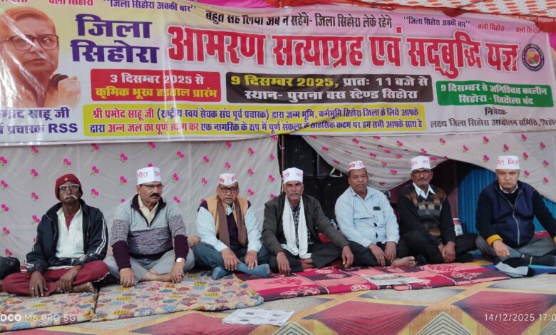 इधर, अस्पताल में भर्ती आंदोलनकारी प्रमोद साहू अन्न सत्याग्रह पर डटे हुए हैं। वहीं धरना स्थल पर आठ अन्य आंदोलनकारी भी अन्न सत्याग्रह जारी रखे हुए हैं। इनमें प्रदीप दुबे, राजभान मिश्रा, संतोष पांडे, पुरुषोत्तम गुप्ता, रामनरेश तिवारी, नत्थू पटेल, प्रेमचंद्र चौधरी और रामजी शुक्ला शामिल हैं। सत्याग्रहियों ने स्पष्ट किया है कि सिहोरा को जिला बनाए जाने की औपचारिक घोषणा तक उनका संघर्ष जारी रहेगा।