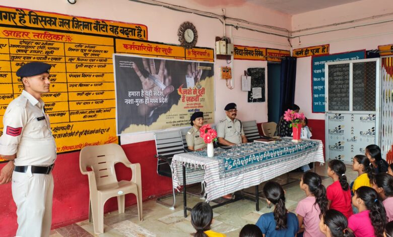 नशे से दूरी है जरूरी”उमरिया पान कुदवारी सुभाष चंद्र बोस बालिका छात्रावास में चला नशा मुक्ति जागरूकता अभियान, छात्राओं से संवाद कर एस.डी.ओपी.थाना प्रभारी ने नशा से दूर रहने की शपथ दिलाई,