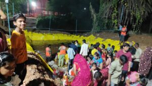 इधर निगमायुक्त श्री नीलेश दुबे एवं जिला अधिकारियों के मार्गदर्शन में प्रतिमा विसर्जन की आवश्यक व्यवस्थाओं के साथ नगर के समस्त विसर्जन घाटों में प्रातः से पूर्ण विधि विधान से भगवान गणेश की प्रतिमाओं का विसर्जन अनवरत जारी।