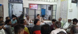 पुलिस प्रशासन की जिम्मेदारी है कि वे त्यौहार के दौरान सुरक्षा और शांति बनाए रखें, जिससे किसी भी तरह की समस्या न हो बैठक मैं इनकी रही उपस्थित राजेश ब्योहार, जयप्रकाश चौरसिया, प्रदीप (तांतू ) चौरसिया,चंद्रकांत चौरसिया,रजनीश गर्ग,सलीम भाईजान, मुस्ताक भाईजान, शानू भाईजान, बशरुल हक, राजेंद्र चौरसिया अज्जू सोनी, अंकित झारिया, जगमोहन मिश्रा,सुशील मिश्रा,राकेश यादव, सतीश चौरसिया सहित अन्य नागरिकों सहित पुलिस स्टाफ की उपस्थिति रही।