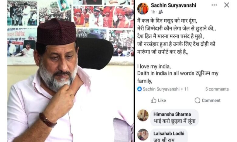 आपको बता दें कि सचिन सूर्यवंशी नाम की प्रोफाइल से सोशल मीडिया पर धमकी दी गई है। धमकी भरे पोस्ट में लिखा है- ‘मैं कल के दिन मसूद को मार दूंगा। मेरी जिम्मेदारी कौन लेगा जेल से छुड़ाने की। देशहित में मरना मारना पसंद है मुझे, जो भी नरसंहार हुआ है, उसके लिए देशद्रोहियों को मारूंगा जो सपोर्ट कर रहे हैं।’ इसके बाद उसी पोस्ट में नीचे अंग्रेजी में भी लिखा गया है।